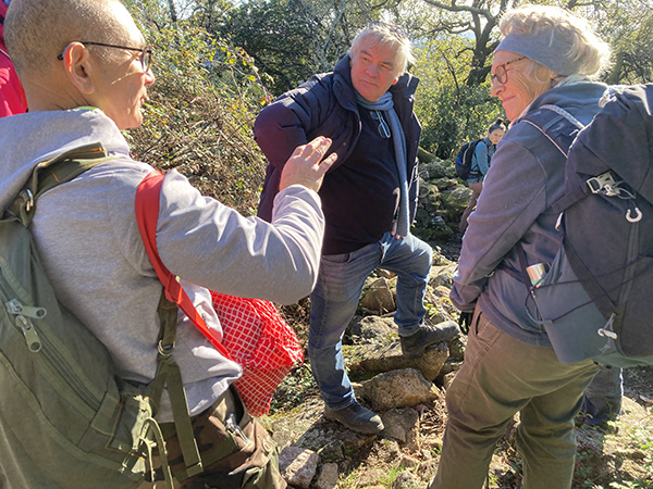 À 10h, nous nous sommes rassemblés dans les collines d’Anduze. Après les présentations et avoir échauffé nos jambes avec quelques exercices, nous avons entamé notre marche.
