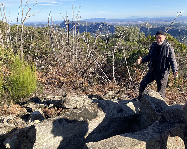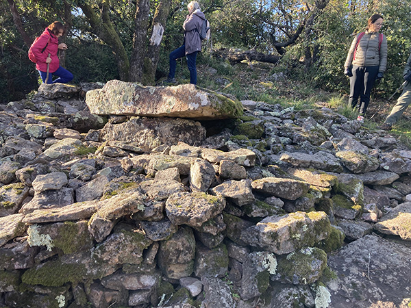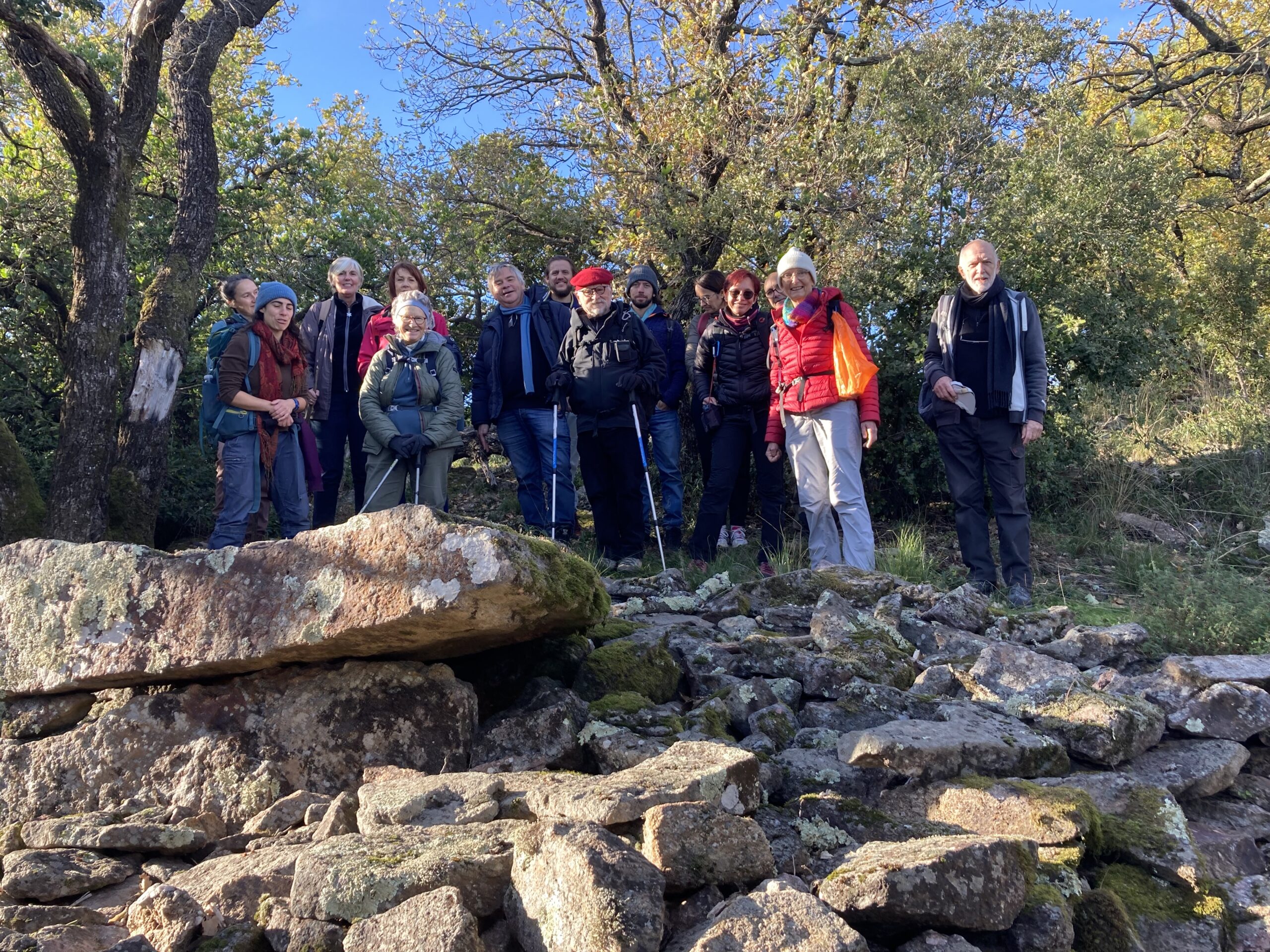 Effectivement, nous avons grimpé vigoureusement sur un sentier « pavé » de nombreuses pierres, mais devenant plus praticable entre les pins. La satisfaction régnait dans le groupe de 15 randonneurs lorsqu’ils ont atteint le tout premier dolmen !