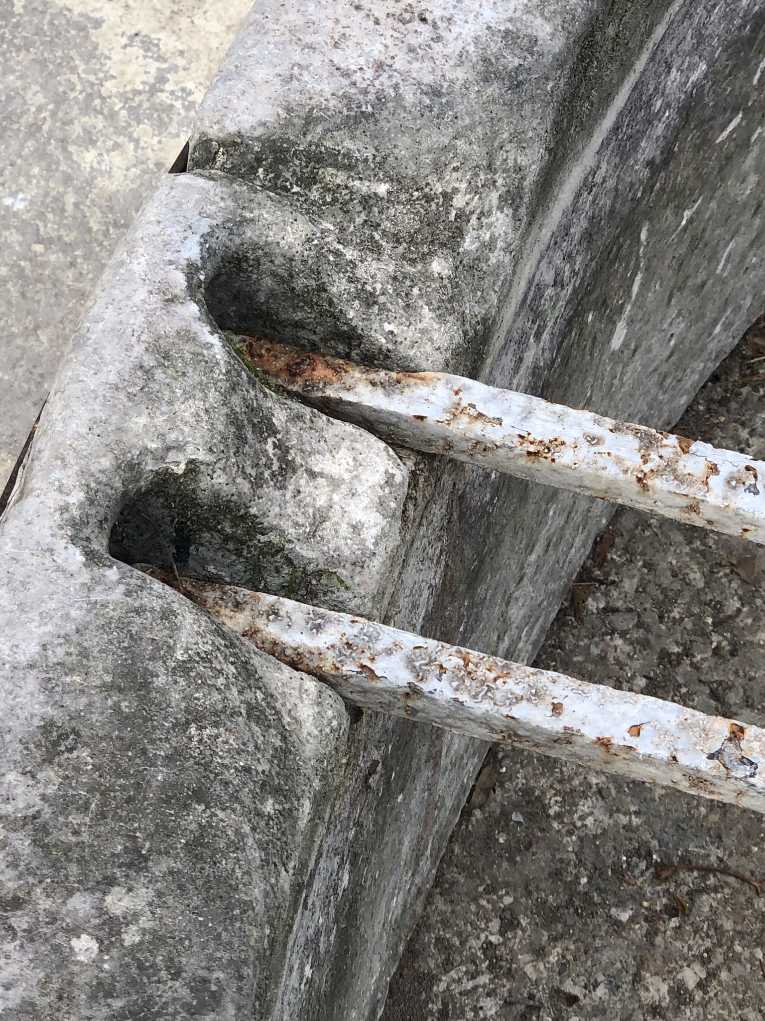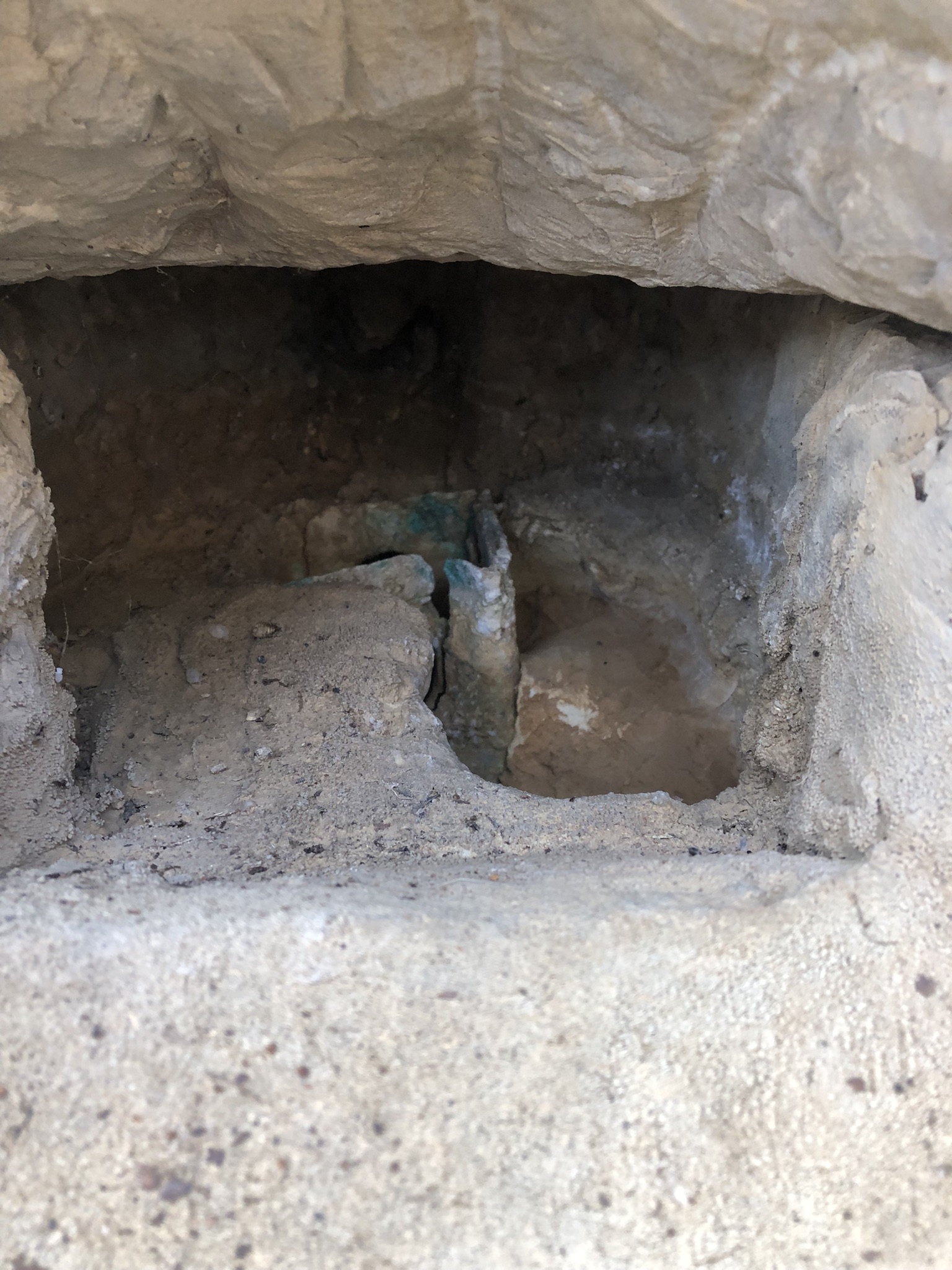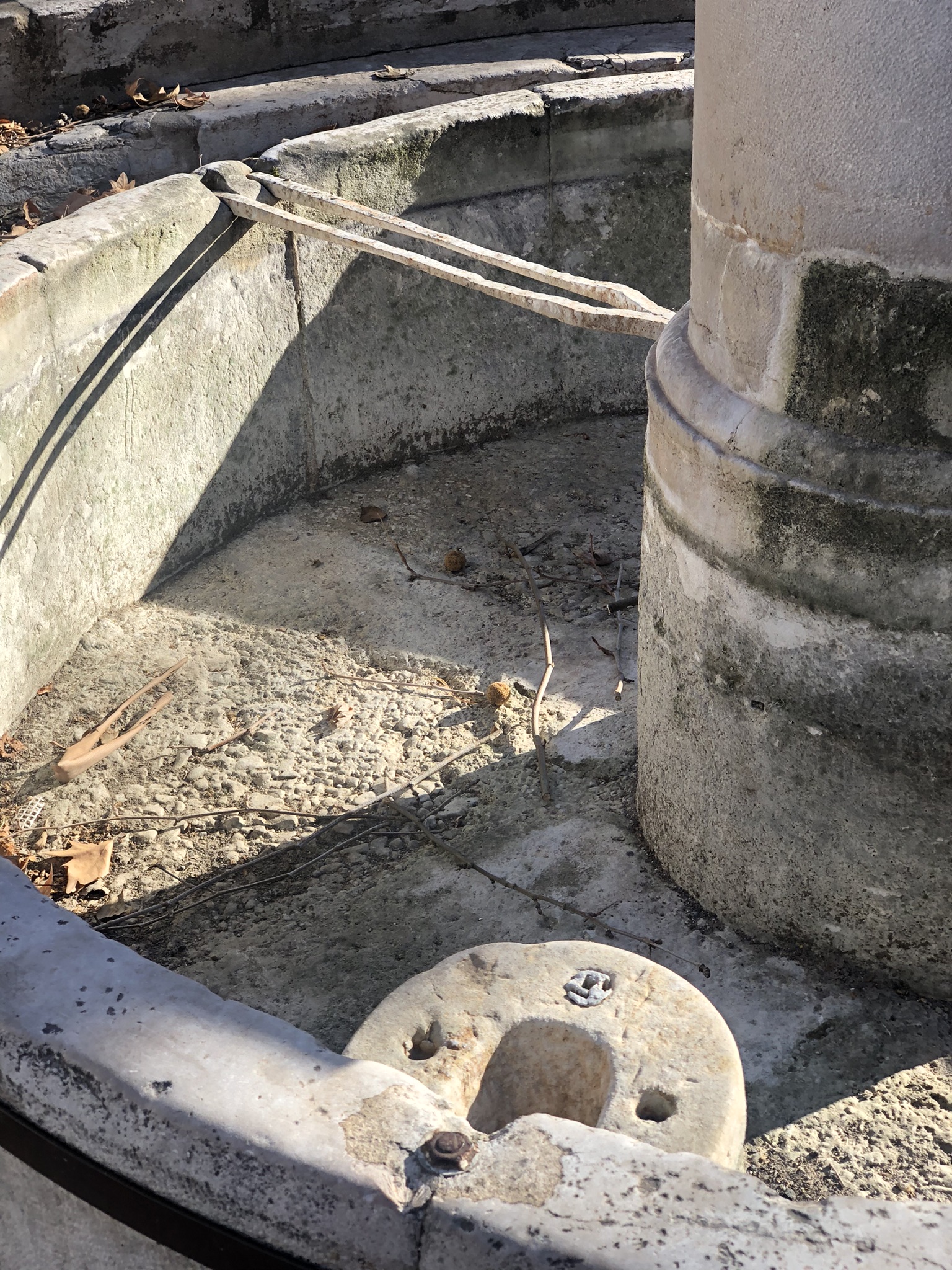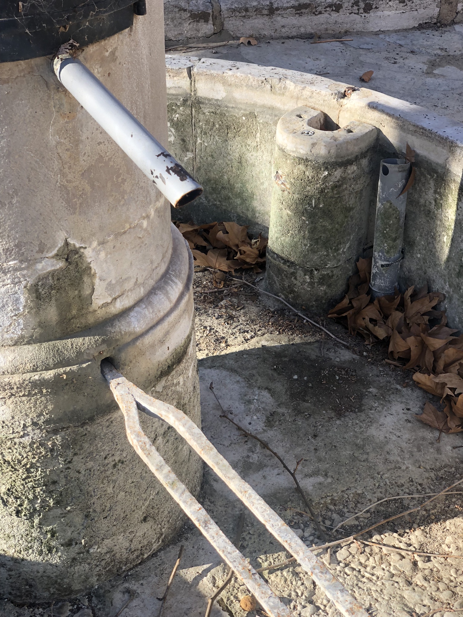Au fond du bol de réception, on devine l’arrivée d’eau verticale, autour de laquelle ont été emmanchés les cylindres de pierre. Du bel ouvrage.