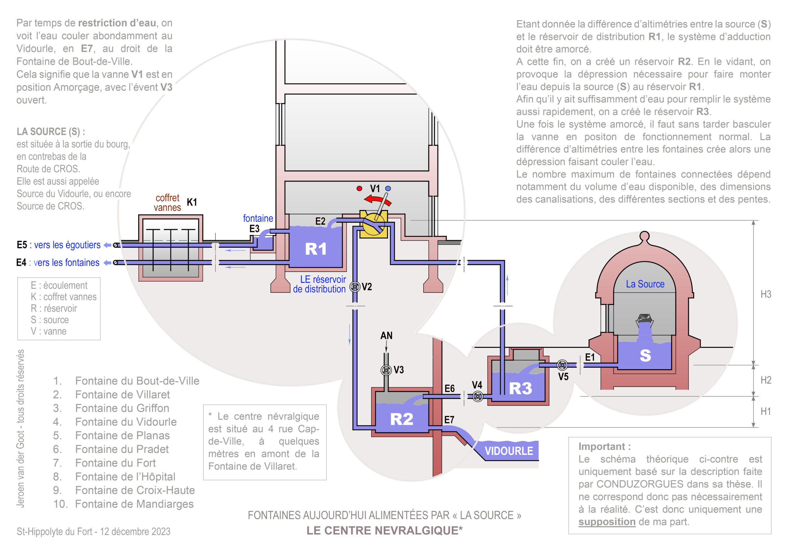 Dans sa thèse, Conduzorgues décrit sommairement la composition de chacun des réseaux d’adduction. L’illustration ci-contre en offre un premier résumé.