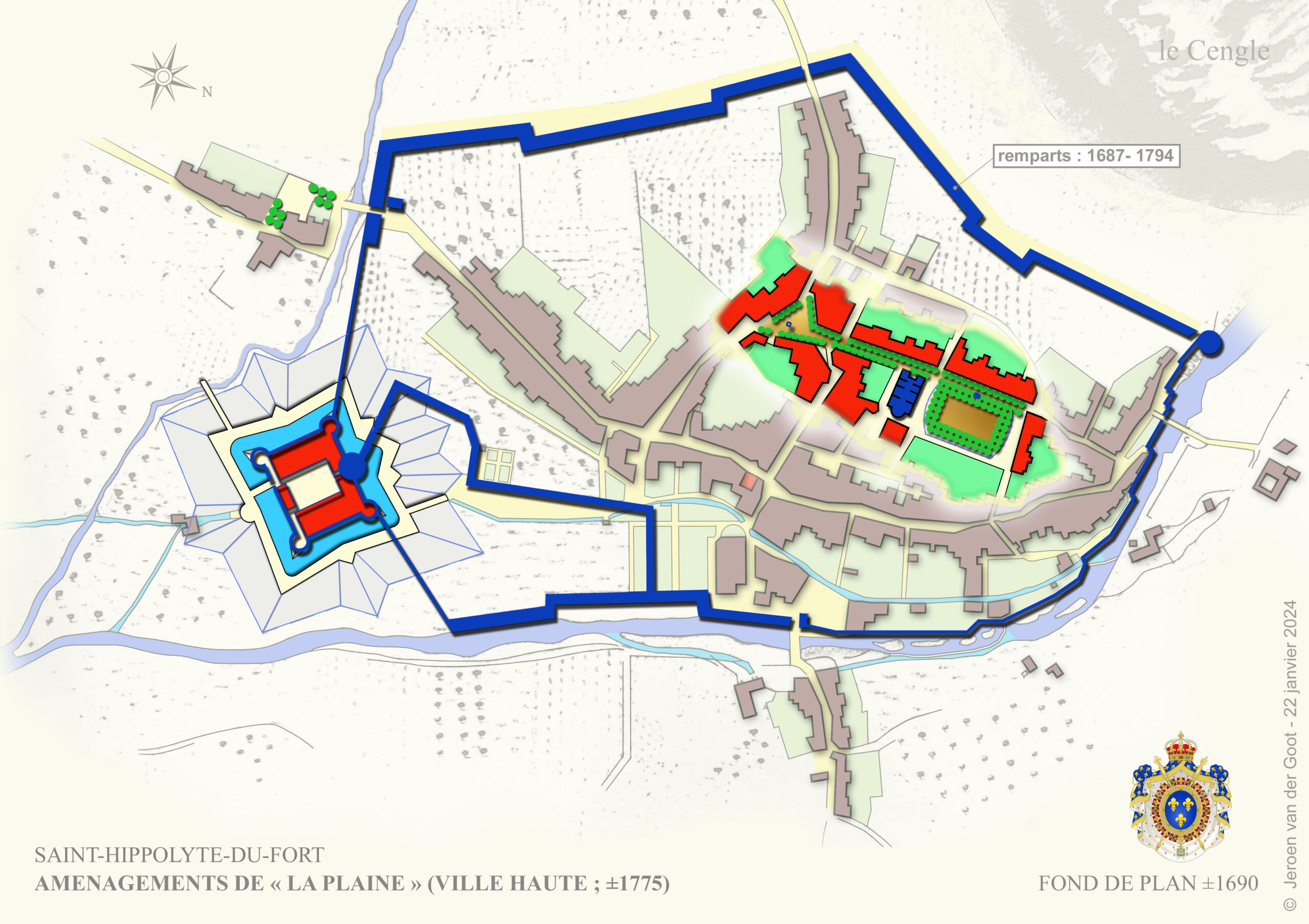- Cf. la mention surlignée dans le cartouche du plan Nolin (1703)