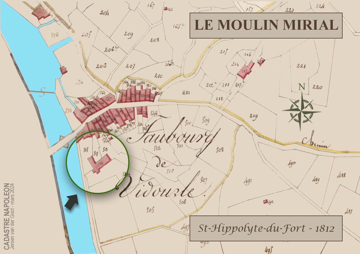 En 1892, il est fait mention d’un Léonce Mirial (2). On conçoit cependant que, comme pour un Hôtel Conduzorgues, les noms changeaient généralement au même rythme que les propriétaires. Par conséquent, si le moulin porte aujourd’hui le nom de Mirial, on peut raisonnablement penser que cette lignée en ait été les derniers propriétaires.
