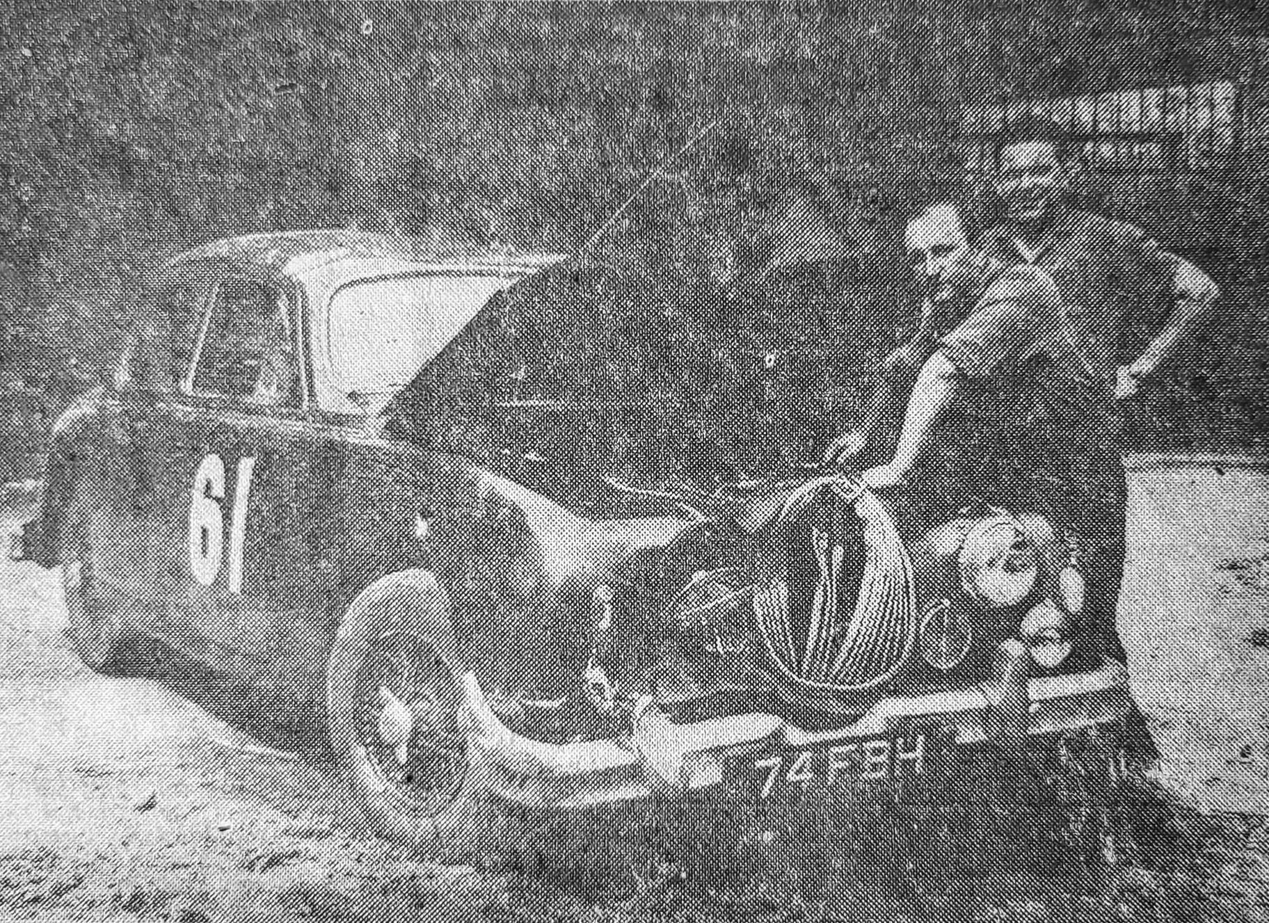 « Nous avons relaté l’accident qui s’est produit au pont d’Aigues-Vives*, au cours du passage du 7ème Tour de France automobile. Nous rappelons que celui-ci a coûté la vie au coureur anglais qui termina deuxième au Mans en 1958, sur Aston Martin DB3S.
