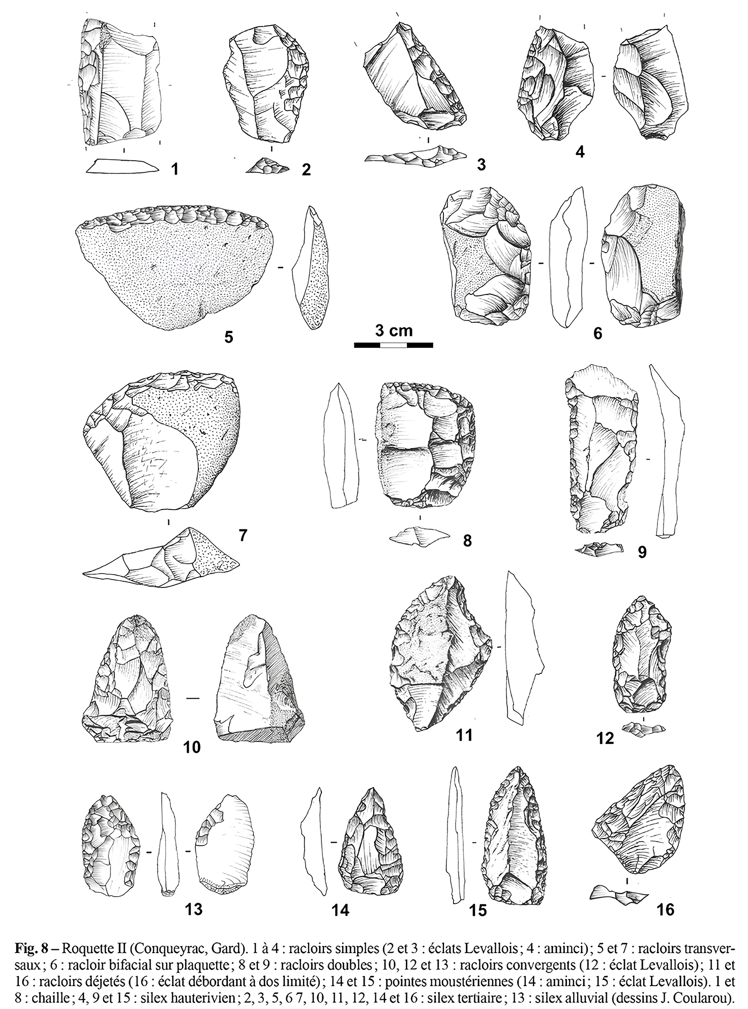 Longtemps rattachée à la culture moustérienne de type Quina, plus typique du Sud-Ouest, l’industrie lithique de la Roquette semble pourtant s’inscrire dans une tradition propre aux marges méridionales, avec des méthodes de débitage efficaces, parfois centripètes, parfois Levallois.